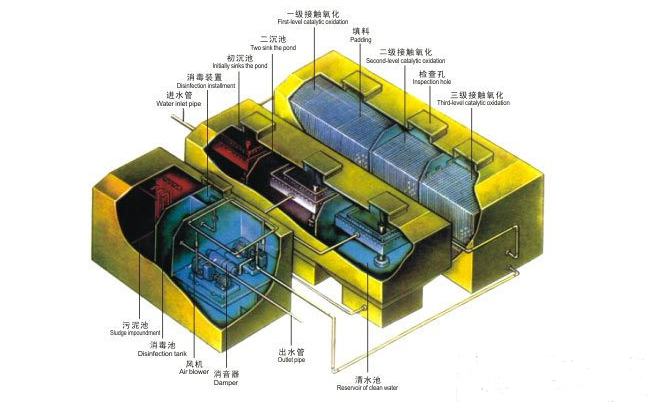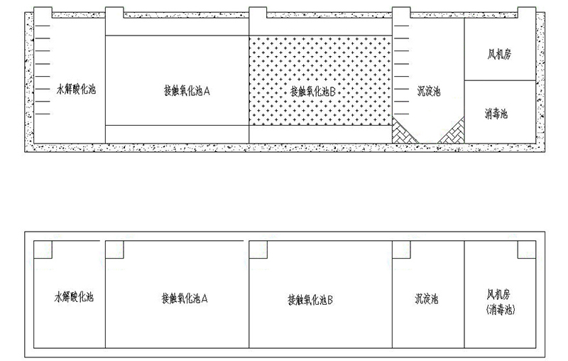 反應(yīng)池采用了生物觸氧化法,僅需三個月(90天)左右排一次泥(用糞車抽吸或脫水成泥餅外運(yùn))。
